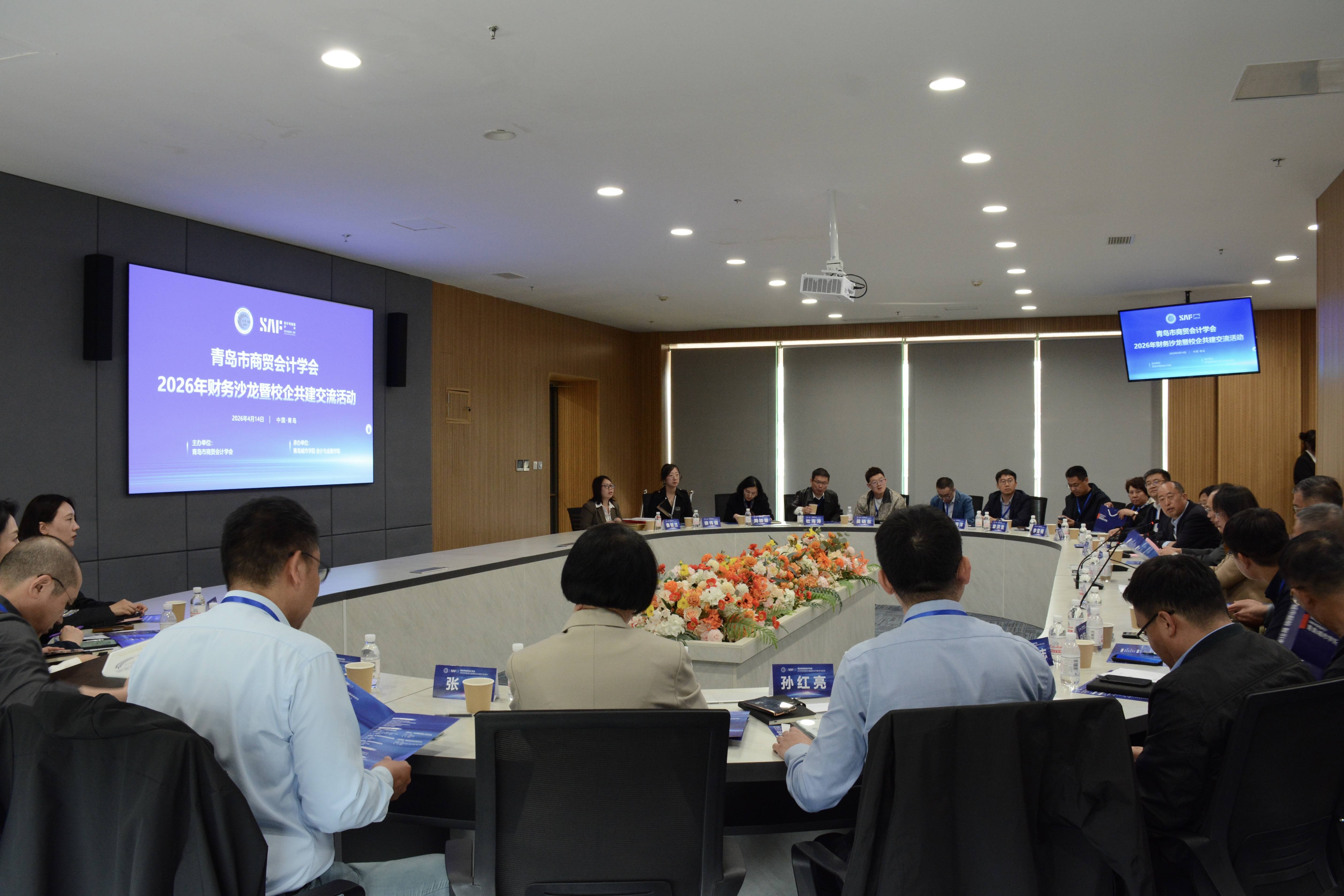 近日,青岛市商贸会计学会走进理事单位——青岛城市学院的系列活动举行。本次活动由青岛城市学院会计与金融学院承办,以“财务沙龙及校企共建交流”为主题,汇聚了省内外13家知名企业、3所驻青重点高校——中国海洋大学、青岛大学、青岛理工大学的专家学者与行业精英,校、协、企三方齐聚一堂,共话财务前沿、共商人才培养、共谋校企共建。