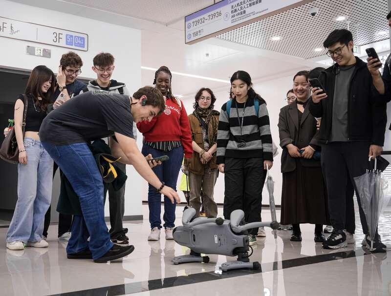 随后,国际生们移步全球数贸中心,在饰品、潮玩、AI机器人、无人机及美妆等热门展区,见证了从传统小商品的创新设计,到智能穿戴、商用无人机等前沿科技的落地应用,感受到了“中国智造”的惊喜。谈起印象最深刻的产品,来自印尼的史蒂文(Steven)对各种智能设备赞不绝口:“特别是机器狗和各类 AI 驱动的智能设备,比如智能眼镜、智能戒指、智能行李箱等等,这种技术进步的程度,我在其他地方从未见过。”